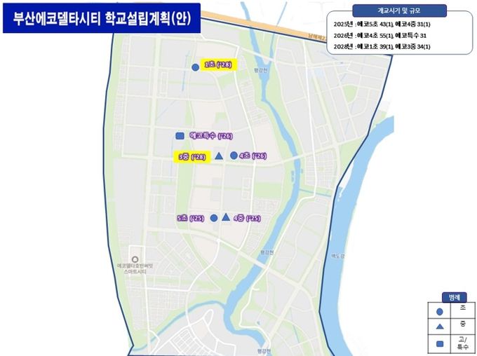 부산교육청은 그동안 에코델타시티 내 증가하는 학생 배치와 교육 여건 개선을 위해 초등학교와 중학교 설립을 추진해 왔다.