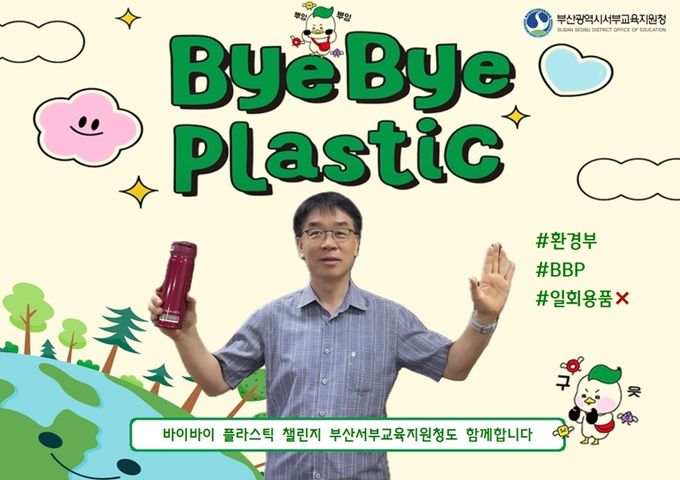 (아름다운교육신문) 부산광역시서부교육지원청은 플라스틱 사용 줄이기 범국민 캠페인 ‘바이바이 플라스틱(ByeBye Plastic) 챌린지’에 이재한 교육장이 동참했다고 5일 밝혔다.