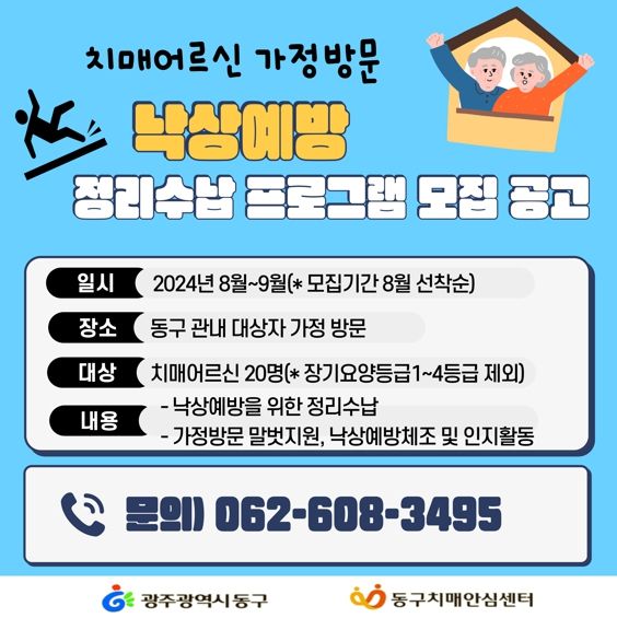 현재 프로그램 참여자 모집 중이며, 동구치매안심센터에 등록된 치매 대상자로 낙상 위험도가 높은 독거 어르신과 노인 부부를 우선 선정할 방침이다.