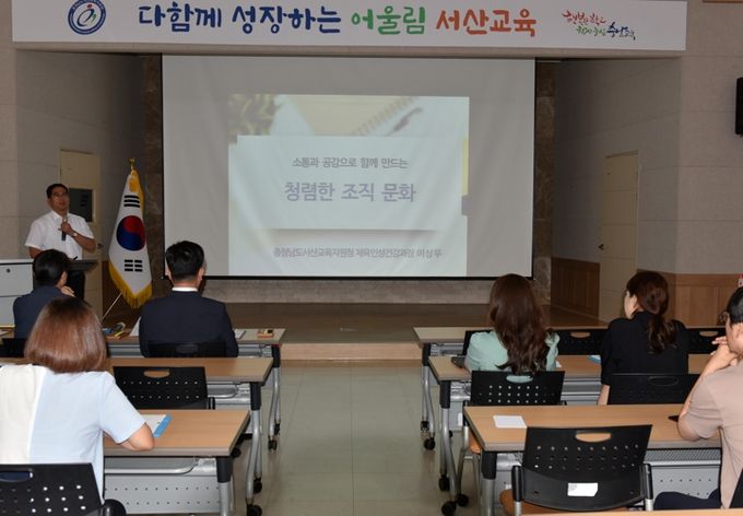 (아름다운교육신문) 충청남도 서산교육지원청은 5일 오전 서산교육지원청 청렴 내부 강사인 이상무 체육인성건강과장의 주재로 청렴(부패방지) 교육을 실시했다.