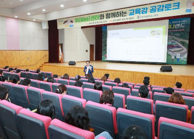 전북특별자치도교육청은 이날 순창 쉴랜드에서 위(Wee)센터 전문상담사 등 70여 명이 참석한 가운데 ‘교육감과 함께하는 공감 토크’를 개최했다.