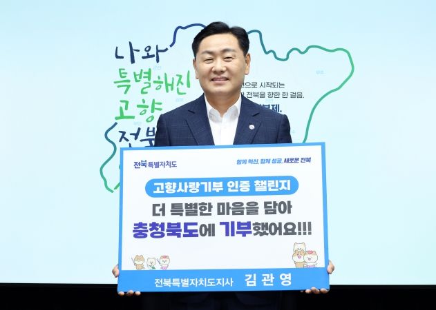 5일 전북자치도에 따르면 김관영 도지사는 지난해 이승로 서울특별시 성북구청장의 지명을 받아 챌린지에 참여한 데 이어 올해 오영훈 제주특별자치도지사의 지명으로 참여 잇기 행사에 두 번째 참여했다.