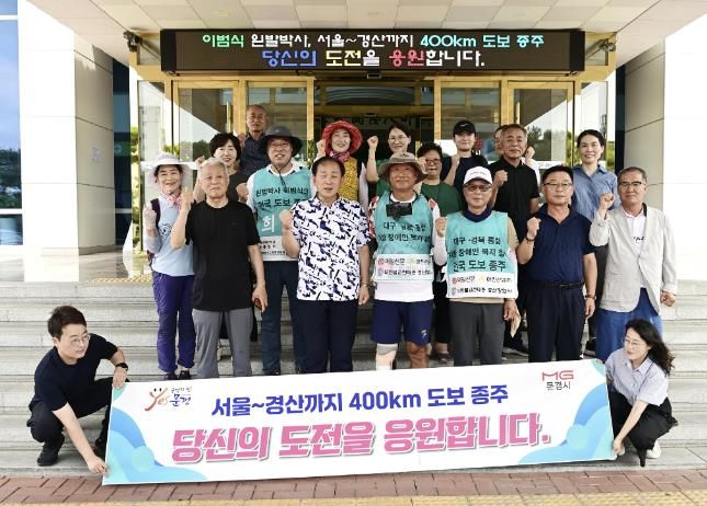 (아름다운교육신문) 문경시는 지난 3일 문경시청에서 대구, 경북 통합과 장애인 복지 향상을 실현하기 위해 서울에서 경산까지 도보로 400km 국토 종주에 나선 이범식 왼발 박사 일행의 문경 도착을 환영했다.
