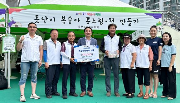 크기나 형태가 고르지 않아 상품성이 떨어지지만, 맛은 뒤지지 않는 복숭아를 농가로부터 구입해 체험 행사를 추진하고, 수익금 전액을 옥천군장학회에 기탁해 뜻깊은 의미를 더했다.