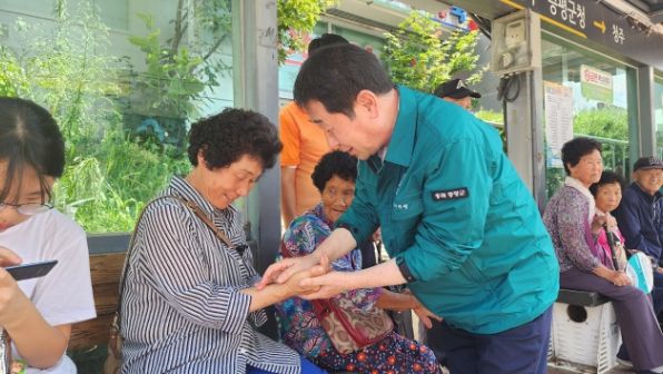 이재영 군수도 지난 5일 인근 버스승강장을 찾아 숨이 턱턱 막히는 한낮 시간대 대중교통을 이용하는 군민들의 건강을 직접 살피고 비치된 얼음 사용법과 폭염 안전수칙 준수를 당부했다.