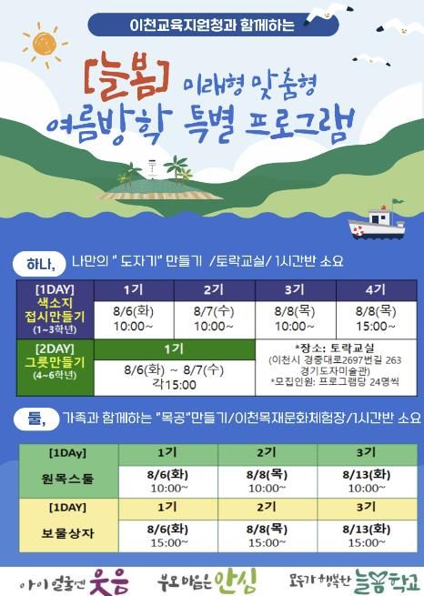(아름다운교육신문) 이천교육지원청은 8월 6일부터 13일까지 늘봄학교 미래형·맞춤형 여름방학 특별프로그램을 운영한다.
