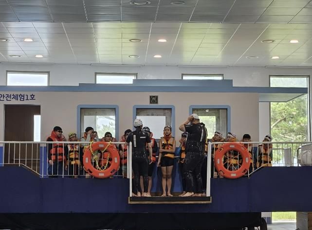 2일차에는 수상 교육으로 ▲물 적응하기 ▲맨몸 입수교육 ▲침수선박 탈출 교육 ▲원형뜨기, 다인 누워뜨기 교육이 이루어진다.