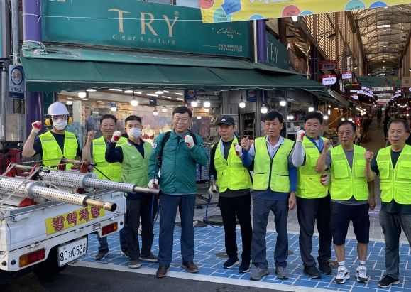 (아름다운교육신문) 울산 동구 대송동 새마을협의회(회장 홍정흠)는 지난 8월 5일 오후 6시 대송시장에서 김종훈 동구청과 함께 합동 방역 행사를 가졌다.