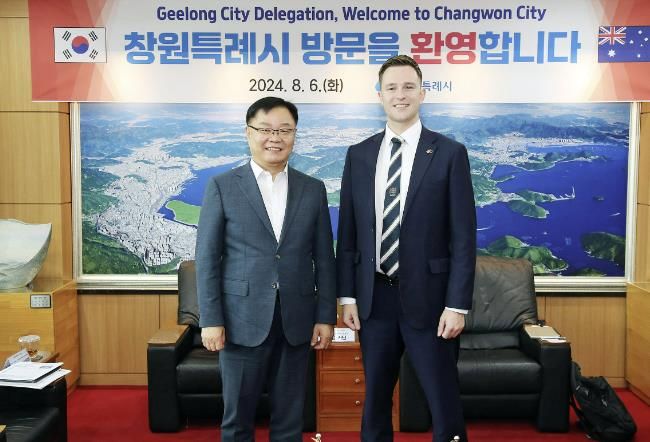 호주 질롱시장과 주멜번총영사를 포함해 6명으로 구성된 방문단은 이날 홍남표 창원특례시장을 만나 수소 에너지 산업, 방위산업 등 창원의 주요 산업 분야에서 기존 관계를 강화하고 양 시간 국제 교류 및 투자 활성화를 위한 협력 방안에 대해 논의했다.