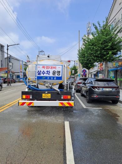 (아름다운교육신문) 고성군은 폭염으로 가마솥더위가 이어지자 8월부터 도심지 간선 도로 위주로 살수차를 운영하는 등 폭염 대응에 총력을 기울이고 있다.
