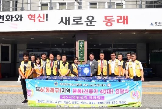 (아름다운교육신문) 부산 동래구는 지난달 31일 국제라이온스협회355-A(부산)지구 제6지역으로부터 선풍기 40대를 기증받아 아동복지시설에 전달하는 행사를 가졌다고 밝혔다.