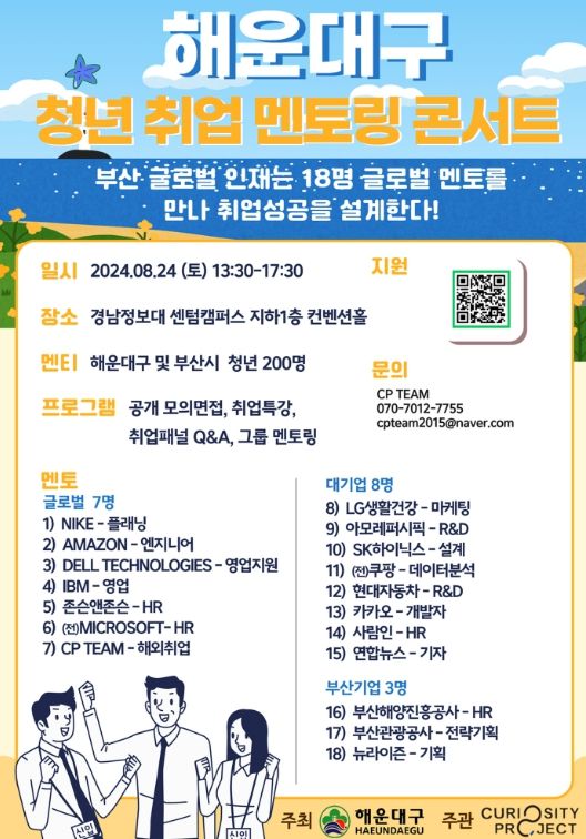 지역 청년들의 취업을 돕기 위한 행사로, 청년들의 선호도가 높은 글로벌기업과 대기업의 최신 채용 트렌드와 맞춤형 취업전략을 소개한다.