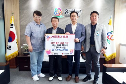 (아름다운교육신문) 홍천 현대 체크기(대표 최해철)는 8월 6일 홍천군청을 방문하여 이웃돕기 성금 100만원을 기탁했다.
