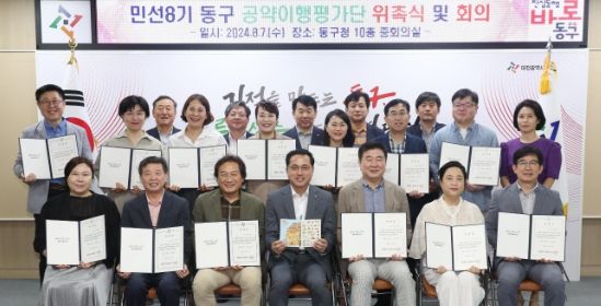 박희조 동구청장은 “구정에 대한 관심과 애정으로 참여해 주신 민선 8기 동구 공약 이행평가단 여러분께 감사드리며, 구민과의 약속인 공약사업이 임기 내 원활히 추진 될 수 있도록 다양한 의견 제시 및 공정한 평가를 부탁드린다”고 말했다.