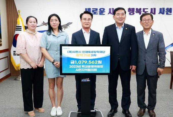 (아름다운교육신문) ‘2023년 학교운영위원장 사천지역협의회’는 지난 7일 사천시 인재육성장학재단에 지역 인재 육성을 위한 장학금 1,079,562원을 기탁했다.