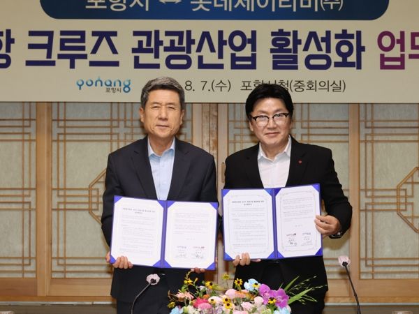 (아름다운교육신문) 포항시는 7일 시청 중회의실에서 롯데제이티비(주)와 ‘영일만항 크루즈 관광 산업 활성화’를 위한 업무협약을 체결했다.