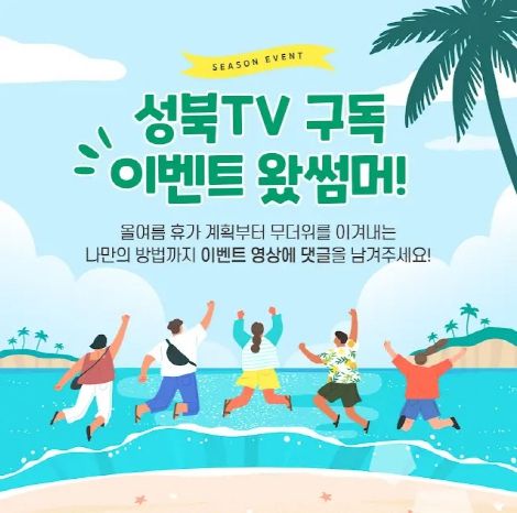 유튜브 ‘성북TV’ 구독과 함께 풍성한 이벤트 경품으로 올여름 무더위를 시원하게 날려버리길 바란다.