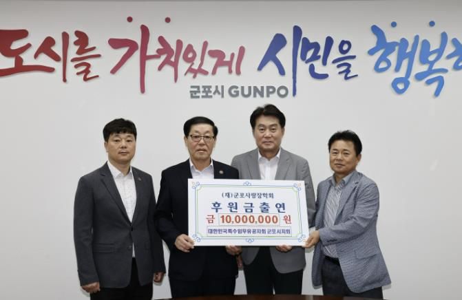 (아름다운교육신문) 대한민국특수임무유공자회 경기도지부 군포시지회가 8월 7일 군포시청 시장실에서 1,000만 원의 장학기금을 (재)군포사랑장학회에 전달했다.