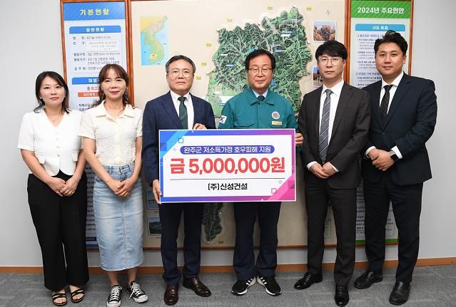 지난 7일 신성건설은 완주군을 찾아 성금을 전달하고, “완주군 피해지역의 빠른 복구와 주민들의 일상 회복에 도움이 되길 바란다”고 말했다.