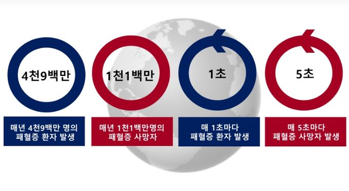 패혈증은 감염으로 전신 염증반응이 일어나고 이로 인해 주요 장기의 기능부전이 빠르게 진행하는 질환으로, 매년 전 세계적으로 약 5천만 명의 패혈증 환자가 발생하며, 이 중 20% 이상이 사망하고 있다.