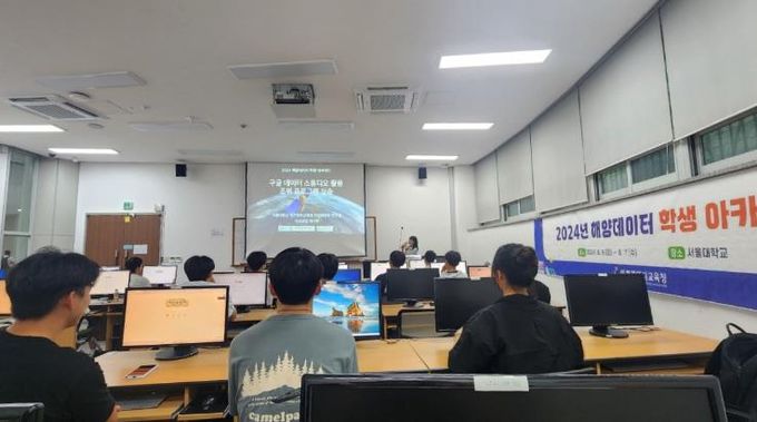 이번 교육은 해양 자료를 바탕으로 인간과 해양의 상호 작용을 이해하고 해양과 공존할 수 있는 문제 해결력 함양을 목적으로 ▶구글 자료 스튜디오 활용 해양 교육 ▶파이썬 활용 해양 자료 처리 실습 ▶진로 지도 및 캠퍼스 투어 등으로 운영했다.