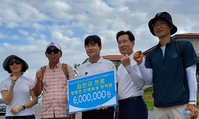 (아름다운교육신문) 한국남자프로골프(KPGA) 투어에서 활약하고 있는 프로골퍼 김민규 선수가 7일 모교인 평동초등학교에 인재육성 장학금을 전달했다.