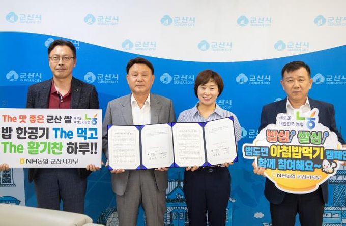 (아름다운교육신문) 8일 군산시와 농협중앙회군산시지부는 시민들의 균형된 식생활 습관으로 건강을 증진하고 군산쌀 소비 촉진을 도모하고자‘군산시민 아침밥 먹기 운동’ 업무협약을 체결했다.