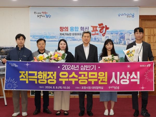 (아름다운교육신문) 포항시는 적극적인 업무 추진으로 시민체감형 행정을 펼친 ‘2024 상반기 적극행정 우수공무원’으로 팀 2팀, 개인 1명 등 총 6명을 선발해 8일 시상식을 개최했다.