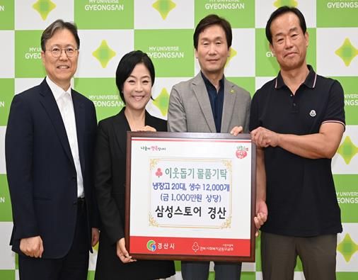 한편, 삼성스토어 경산점은 2022년과 2023년 각 1,000만원을 경산시 지역사랑보장협의체에 기부했으며, 올해는 폭염나기 냉장고와 생수를 기탁하여 이웃사랑 나눔을 계속 이어오고 있다.