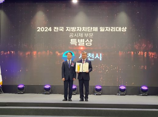 (아름다운교육신문) 사천시는 지난 8일 서울 엘타워에서 고용노동부 주관'2024년 전국 지방자치단체 일자리대상'지역일자리 공시제 부문 ‘특별상’을 수상했다.