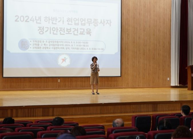 연수 내용으로는 ▲직장 내 괴롭힘 예방과 직장 내 괴롭힘에서 나를 지키는 법 ▲스트레칭을 통한 직업병 예방 ▲학교 현장의 재해유형과 재해유형별 대책 ▲사상의학으로 풀어보는 나의 체질 분석 ▲학교 급식실 현업업무종사자의 산업안전 및 사고 예방으로 구성했다.