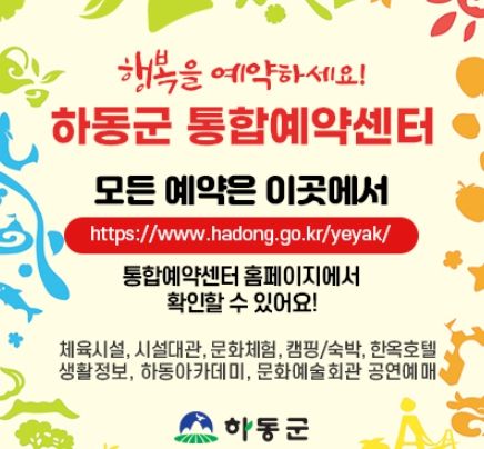 하승철 하동군수는 “이번 통합예약센터로 공공시설 이용 편의성이 크게 향상될 것”이라며, “앞으로도 수요자 중심의 서비스 제공을 위해 지속해서 노력하겠다”고 말했다.