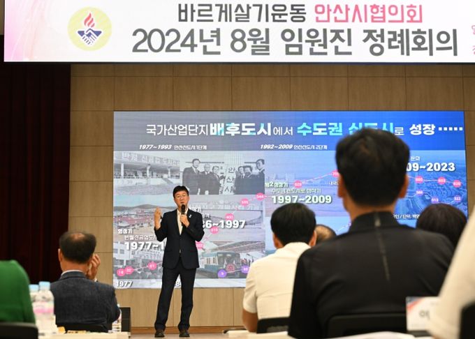 (아름다운교육신문) 안산시는 이민근 안산시장이 지난 8일 안산시청 대회의실에서 열린 바르게살기운동 안산시협의회 임원진 월례 회의에 참석해 시정 특강을 진행했다고 9일 밝혔다.