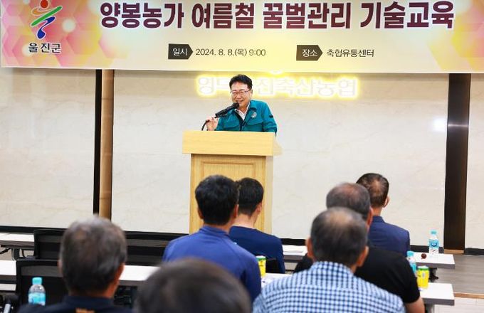 (아름다운교육신문) 울진군은 지난 8일 영덕울진축협유통센터에서 지역 양봉농가 80명을 대상으로 여름철 꿀벌관리 기술교육을 실시했다.