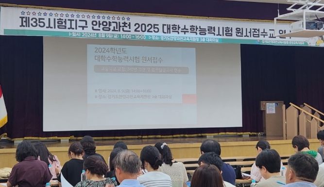 (아름다운교육신문) 경기도안양과천교육지원청은 8월 9일 오후 2시, 지원청 내 대강당에서“2025학년도 대학수학능력시험 원서접수 업무담당자 연수”를 개최했다.