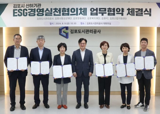 (아름다운교육신문) 민선8기 김포시가 시 산하 6개 공공기관이 시의 비전을 공유하고 같은 목표를 지향하고자 9일 ‘ESG경영실천협의체 협약’을 체결하고, 더 강화된 협력으로 김포시의 발전을 이끄는 데 뜻을 모았다고 밝혔다.
