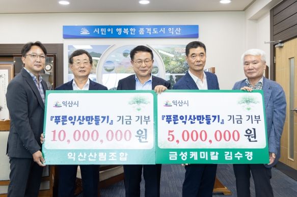 NH농협 익산시지부와 익산산림조합은 각 1000만 원, 금성케미칼은 500만 원을 기탁했다. 기부금은 ㈔푸른익산가꾸기 운동본부에 기탁된 후 나무 식재 비용으로 쓰일 예정이다.