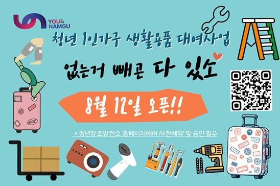 (아름다운교육신문) 부산 남구는 1인가구 청년의 생활 속 불편을 해소하여 삶의 질을높여주기 위한 생활용품 대여사업‘없는거 빼곤 다 있소’를 추진한다고 7일 밝혔다.