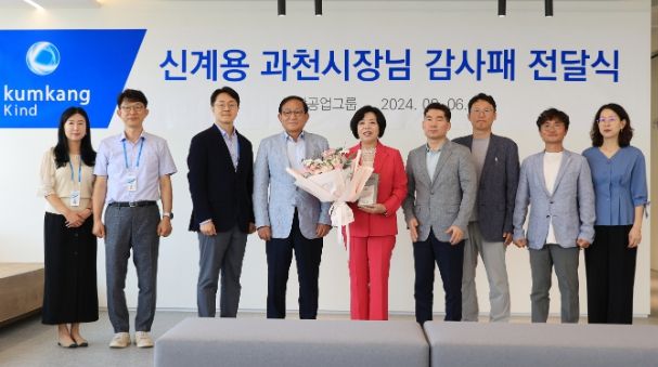 금강공업에서는 이날 해당 사옥 신축에 있어 건축허가에서부터 사용승인 절차에 이르기까지 모든 과정이 원활하게 진행될 수 있도록 지원해 준 과천시에 감사의 뜻을 표하며 신계용 과천시장에게 감사패를 전달했다.