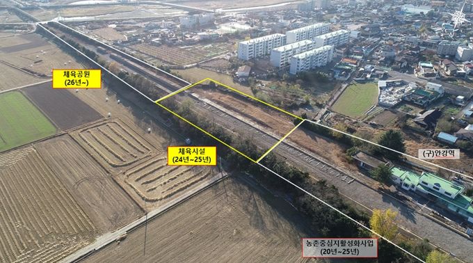 시는 옛 안강역(남쪽) 일원 4040㎡ 면적에 내년도 12월까지 10억 원의 예산을 들여 테니스장 2면, 족구장 2면을 조성한다. 여기에 보행로, 진입계단, 녹지공간도 함께 만든다.