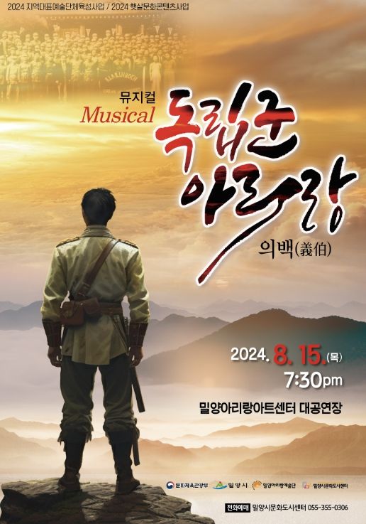 밀양아리랑예술단 창단기념 공연으로 밀양 출신 독립투사의 활약상을 담은 뮤지컬‘독립군아리랑’을 오는 15일 밀양아리랑아트센터 대공연장에서 선보일 예정이다.