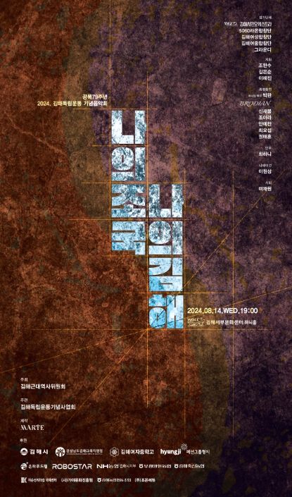 이헌동 김해근대역사위원회 위원장은 “광복 79주년을 맞아 선조들의 의롭고 뜨거운 마음을 김해시민과 함께 음악으로 만나고 싶어 기획한 공연이다”며 “많은 시민들이 함께해 주시길 바란다”고 말했다.