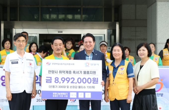 이번 지원 대상은 폭염으로 인한 온열질환에 취약한 저소득 취약계층 홀몸 어르신 등 300세대로, 박달2동 내 저소득 취약계층 120세대, 안양시 희망풍차 결연세대 129세대, 기타 안양시 저소득 취약계층 51세대 등이다.