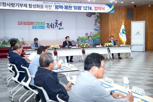 노선길이 127.4km의 고속도로를 사이에 둔 양 도시간 협약식은 12일 제천시청 청풍호실에서 제천시장(김창규)·평택시장(정장선), 제천 평택 관내 12개 농축협 관계자 30여명이 참석한 가운데 '제천·평택 이음 1274'협약식을 체결하고 고향사랑기부제 활성을 위한 홍보 캠페인을 진행한다.