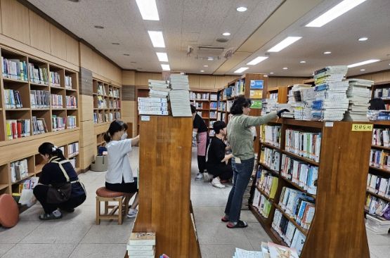 장서 점검 지원은 학교도서관 장서의 효율적인 관리로 학생들에게 쾌적한 독서 환경을 제공하기 위해 2019년부터 매년 실시하고 있으며, 실물 자료와 데이터로 등록된 자료의 일치 여부를 파악하고, 오․훼손 및 오래되거나 이용률이 낮은 불필요한 자료를 정리하여 서가 공간을 확보하는 작업이다.