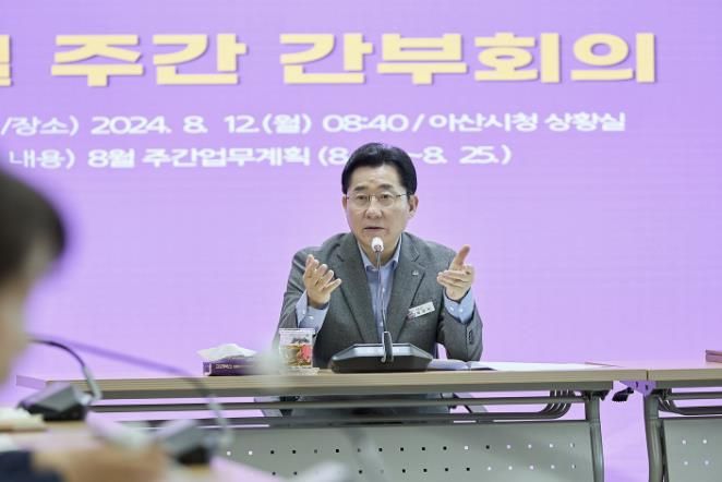 또, 금주 열리는 ‘아트밸리 아산 신정호 썸머 페스티벌’ 막바지 준비 철저를 강조하며 “5일간 열리는 큰 행사이니만큼, 안전하고 즐거운 축제로 마무리될 수 있도록 전 부서는 막바지 홍보와 준비에 집중해달라”고 덧붙였다.