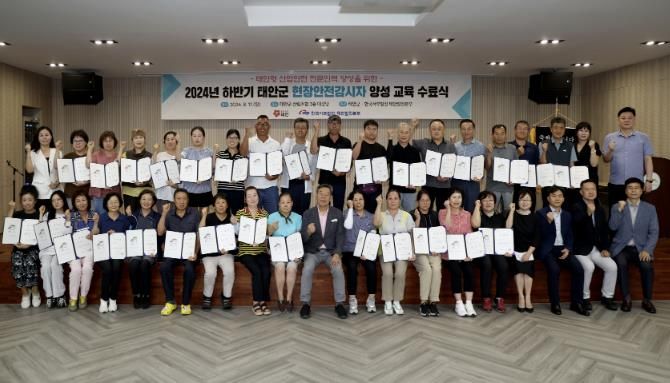 군은 지난 11일 태안읍에 위치한 태안군 산림조합 대강당에서 가세로 군수와 군 관계자, 교육생 등 40여 명이 참석한 가운데 ‘하반기 태안군 현장안전감시자 양성과정 수료식’을 갖고 총 30명에게 태안형 현장안전감시자 양성과정 수료증을 수여했다고 밝혔다.