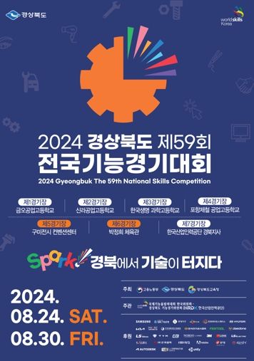 전국기능경기대회는 8월 24일부터 30일까지 7일간 구미, 포항, 경주, 안동 등 4개 시에서 ‘경북에서 기술이 터지다’를 주제로 열린다.