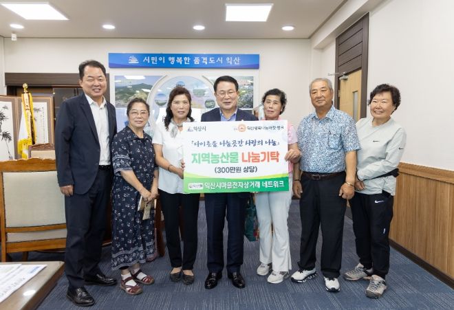 정헌율 익산시장은 "수해 복구로 여력이 없는 와중에도 지역사회를 위해 농산물을 기탁해 주신 마을전자상거래 네트워크에 감사드린다"며 "기탁해 주신 농산물은 취약 계층에 잘 전달하겠다"고 답했다.
