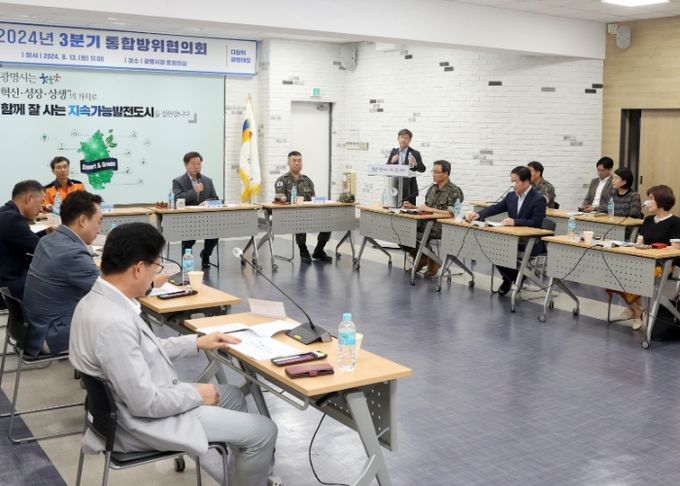 시는 13일 시청 중회의실에서 박승원 광명시장, 제2506부대 제2대대, 광명경찰서, 광명소방서, 광명교육지원청 등 유관 기관장, 협의회 위원 등 19명이 참석한 가운데 2024년 3분기 통합방위협의회를 열었다.